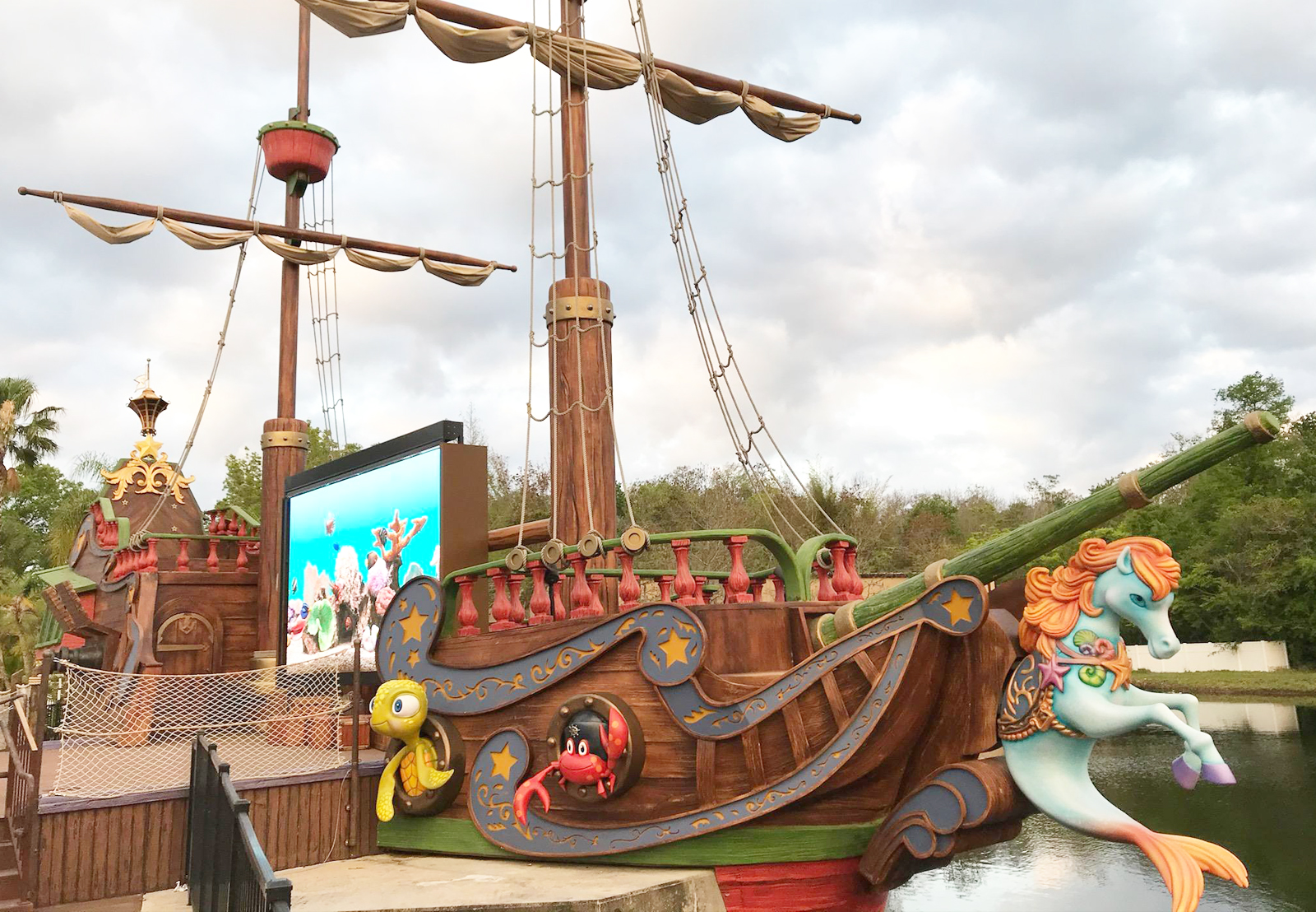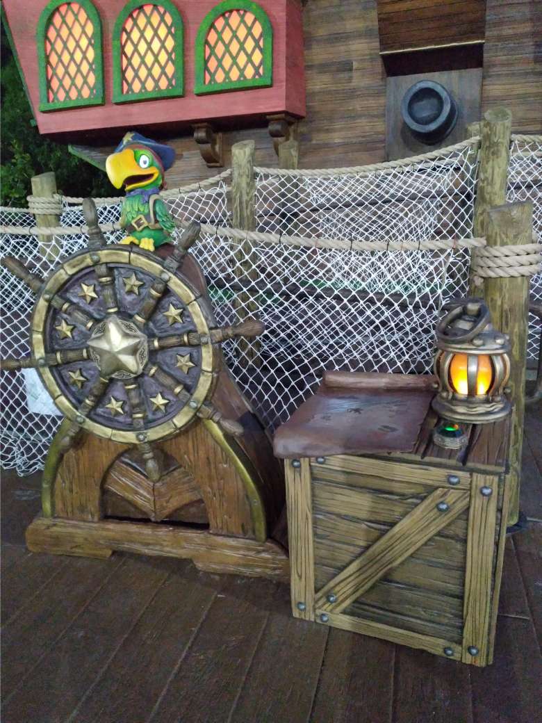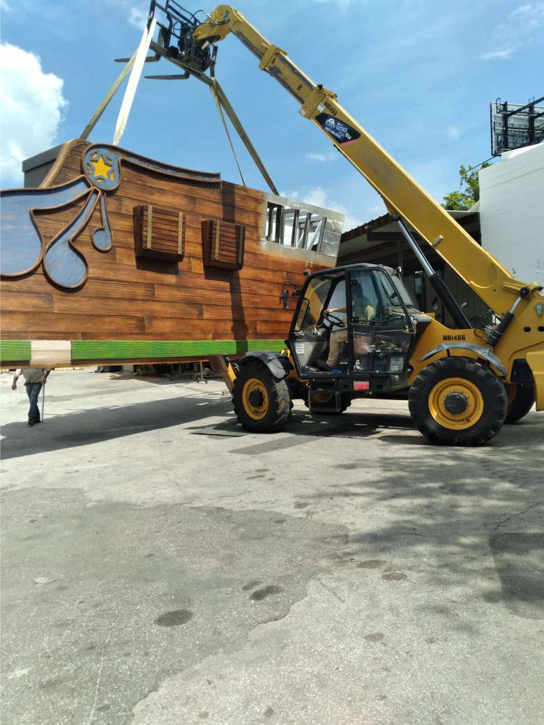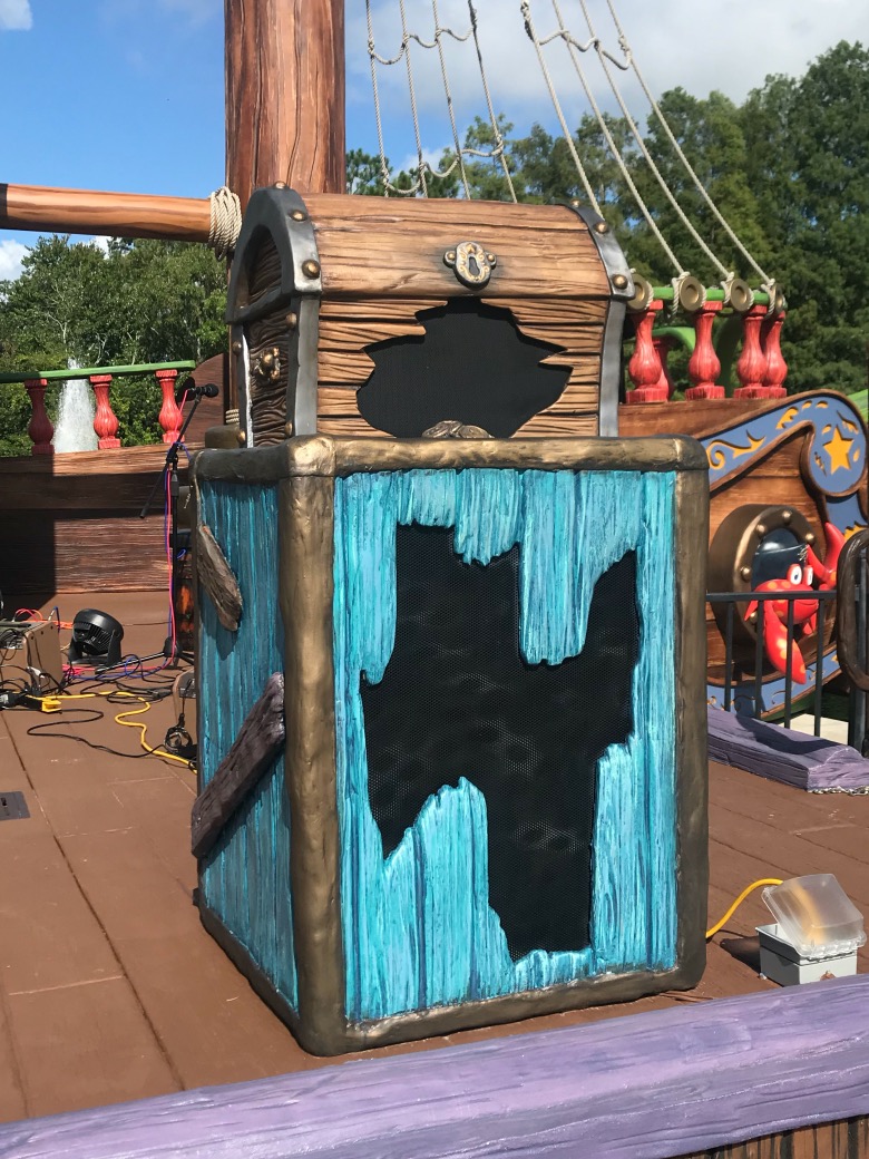 Another service we are very strong in is the complete creation of new experiences from conceptual stage, through virtual walkthroughs to final fabrication and installation. This can be seen best by our latest installation we created for Give Kids The World Village, a resort in Kissimmee dedicated to children suffering life threatening illnesses. SteamLabs was selected to do a completely new design of the Serendipity, a 70′ pirate ship at the resort’s pool area location. Lead Designer and Company Founder, Michael Ingrassia was chosen to design the new ship, oversee all phases of demolition and construction of the new ship, as well as manage his team in the creation of many props and characters that adorn the ship and the stage area. SteamLabs was also contracted to completely restore the decking ramp and rope netting that leads guests up to the ship’s massive deck and stage.